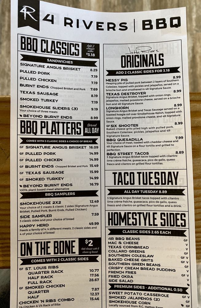 4 Rivers Smokehouse, a renowned Southern-style barbeque restaurant in Gainesville, FL, offers a diverse menu suitable for all preferences. From their famous burnt ends to vegan options like the brisket burnt ends, every dish is prepared with care and attention to detail. The brisket, smoked for 18 hours, is a standout item, showcasing the restaurant's commitment to quality and flavor. The cozy ambiance, friendly staff, and wide selection of sides make dining at 4 Rivers a memorable experience. Don't miss out on their unique desserts, like the mojito cupcake and crispy cream bread pudding. Whether you're a barbeque enthusiast or looking for a new culinary experience, 4 Rivers Smokehouse is a must-visit destination for delicious food and excellent service.